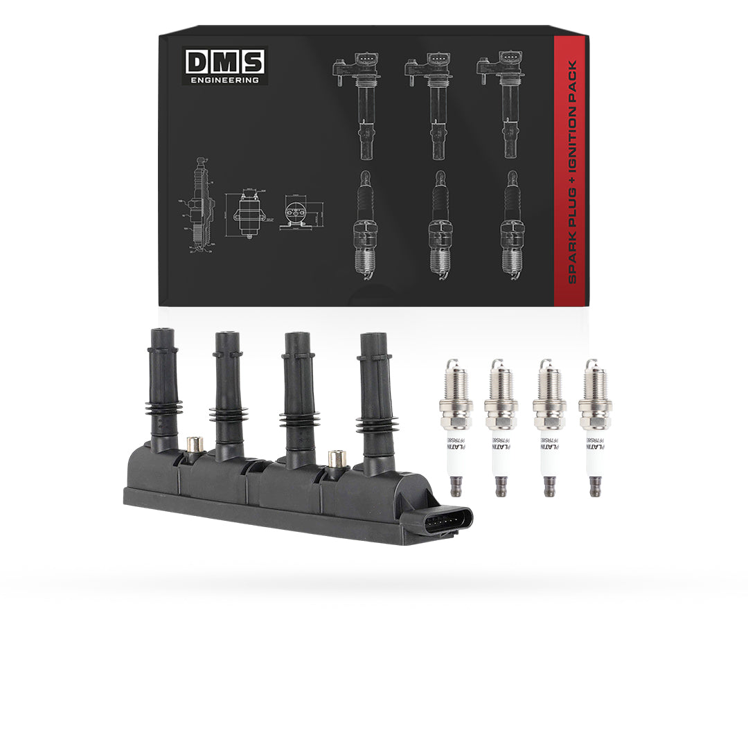 Ignition Coils + Spark Plugs: Complete set with single ignition coil and four spark plugs.
