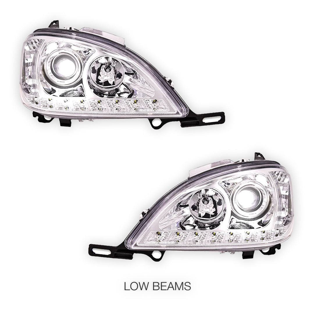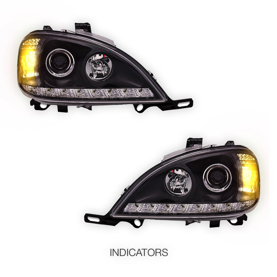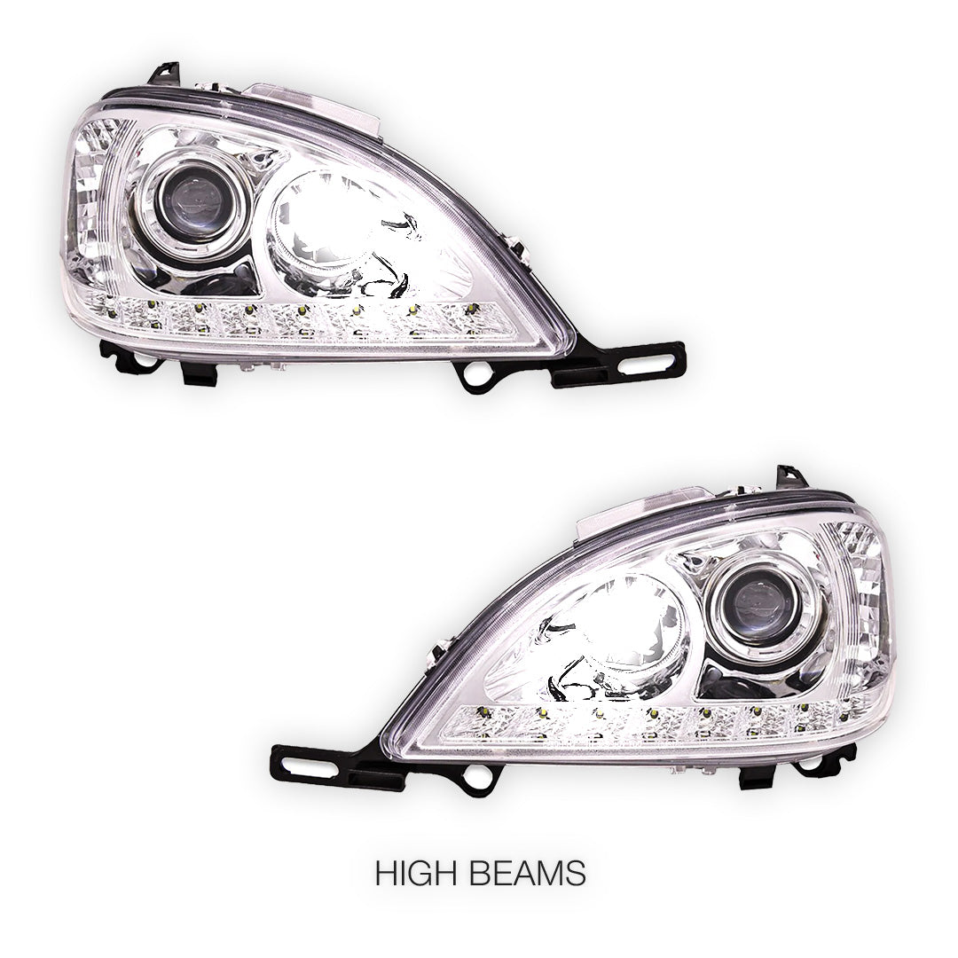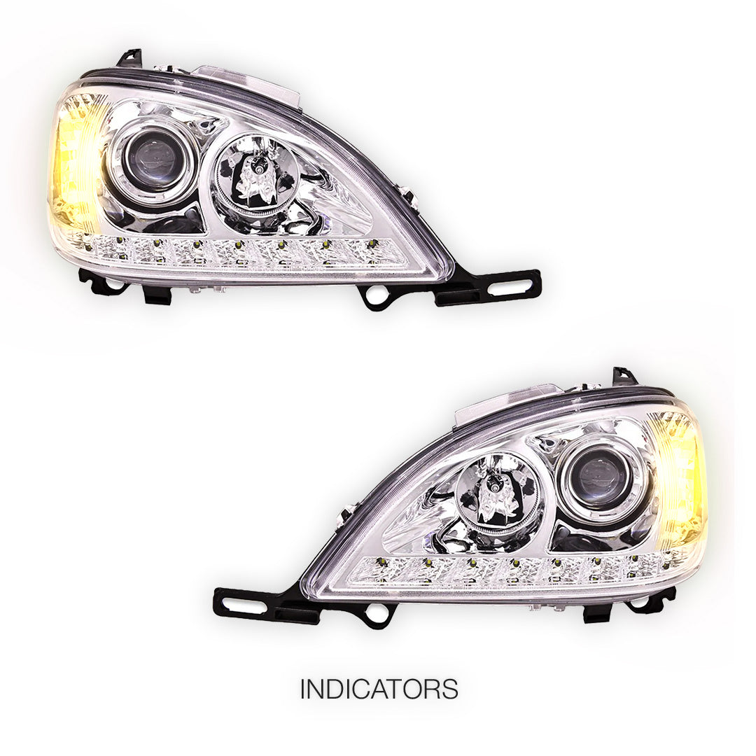 Compatible with Mercedes-Benz M-Class W163 (1998 - 2001) models, our premium headlights are engineered for precision fit and easy installation. Designed to seamlessly integrate with the existing factory mounts and wiring, these lights can be installed swiftly, ensuring minimal downtime for your vehicle.