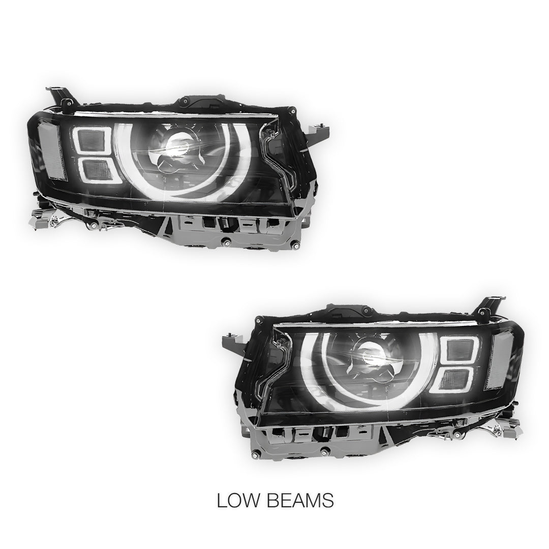 Compatible with Toyota LandCruiser 300 Series (2021 - 2024) our premium Headlights are engineered for a precise fit and hassle-free installation. Designed to seamlessly integrate with the factory mounts and wiring, these lights provide reliable illumination and enhanced road safety.
