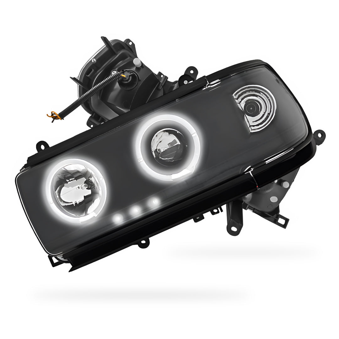 - This headlight is not plug-and-play; wiring is necessary for the LED + CCFL parking lights, low/high beams, and corner lights.