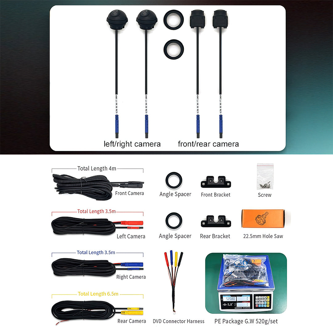 Enhance your driving confidence and safety with our advanced 360-degree vehicle camera system, engineered to seamlessly integrate with head units featuring 4GB, 6GB, or 8GB RAM. This compact, high-performance camera setup provides a full panoramic view around your vehicle, eliminating blind spots and making parking, reversing, and maneuvering effortless.